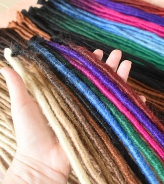 We consider our Semi Crocheted synthetic dreadlocks to be our entry level range. They are affordable and note quite as flexible as the Crocheted Synthetics. They are made by crocheting the outer layer of hair and wrapping it around a bundle of undreaded hair. The textured hair created by crocheting the outer layer creates an authentic looking dread whilst the twist is still somewhat evident. Available in both single and double ended, these are typically used to braid into undreaded hair.