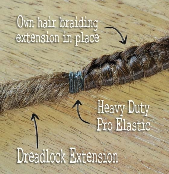 Our Nylon Dreadlock Extensions Thread is a great way to secure your dreadlock extension because it is discreet, very strong and long lasting and allows you to bind the ends of your own hair to the dread so it offers a neater finish. As you near the end of the braid, wrap the thread around the end of the braid capturing the ends of your hair and tie off in a knot. Pro Elastics are another option to secure the braids in place.