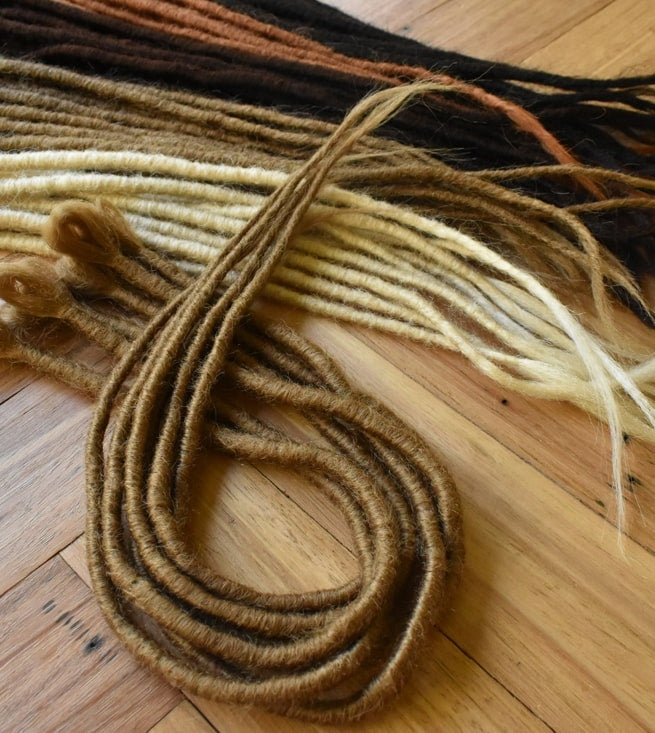 WEAR & CARE: Our dreadlock extensions will last indefinitely and if braided in, can be worn for many weeks and even months at a time, depending on how quickly your hair grows. They can get wet, washed and shampooed as per your normal hair. Occasional maintenance may be required to tidy them up by either crocheting in any loose hairs or re heat sealing.