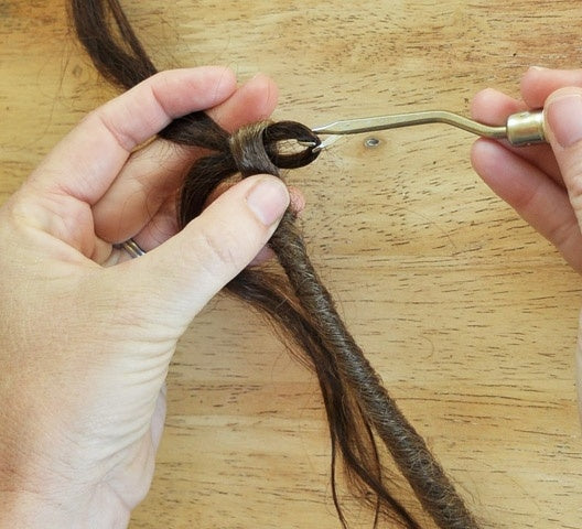 Pushing bundles of your own hair through the loop at the top of single ended dreadlock extensions can be tricky but this Latch Hook makes the job so much easier and ensures the loop is not stretched open.